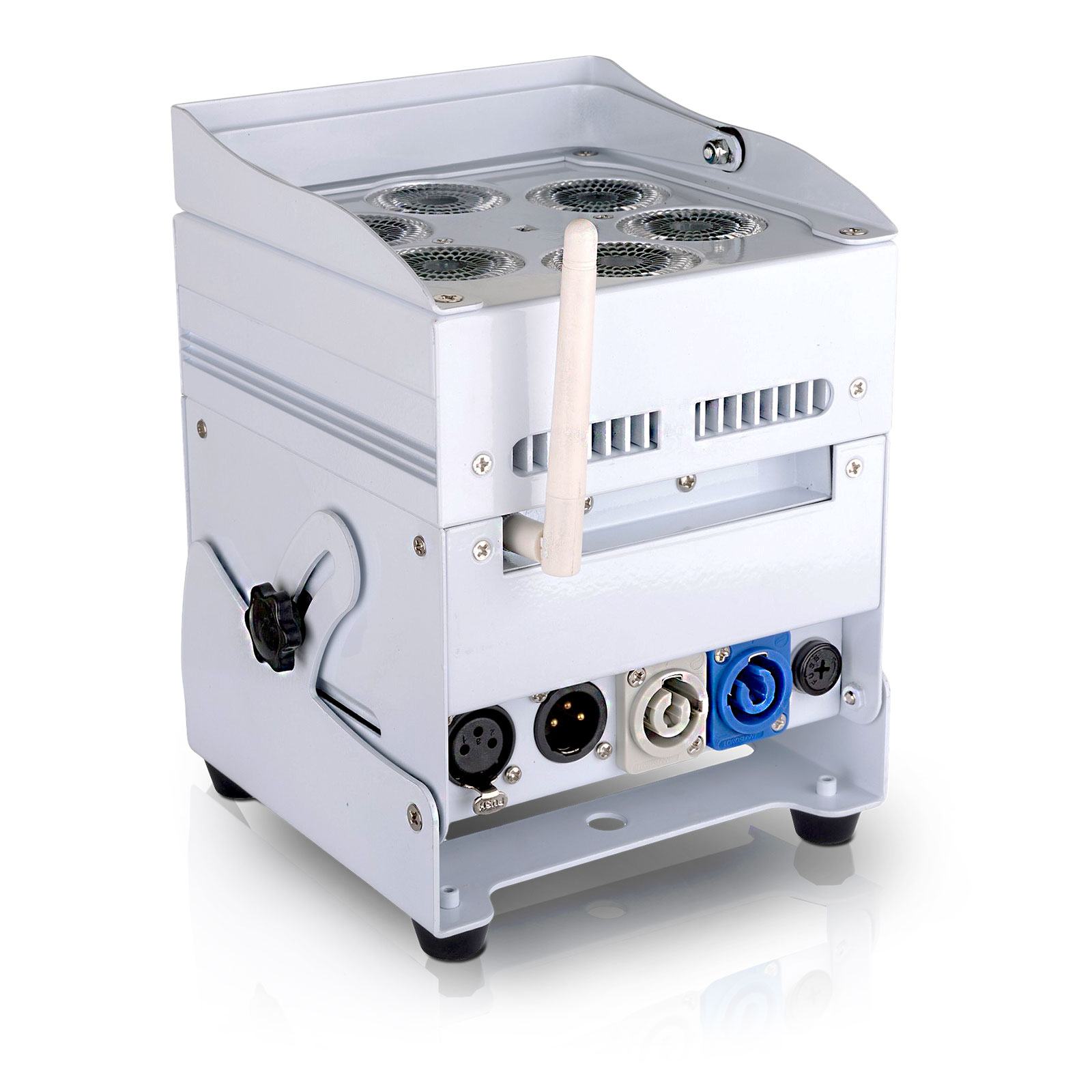 - Jeder LED-Projektor ist mit einem drahtlosen Transceiver-Modul (Sender und Empfänger) ausgestattet, das 100 % kompatibel mit dem W-DMX-G4-Protokoll ist.