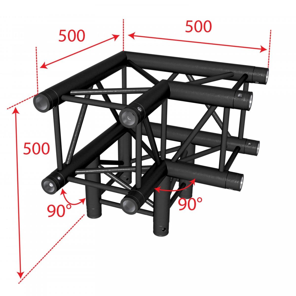 4-Punkt Traverse 3-Wege-Ecke 90° in schwarz