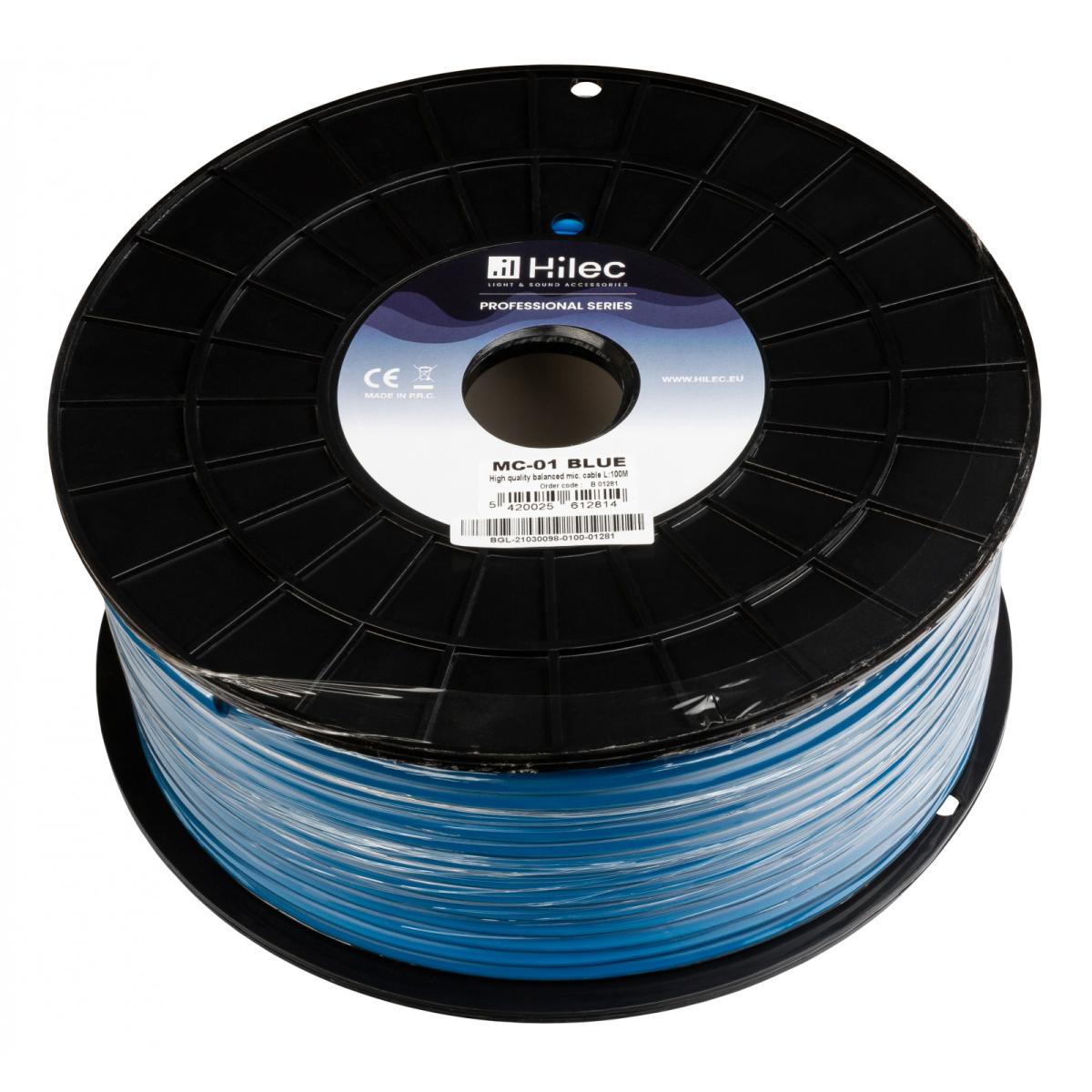 Hochwertiges Mikrofonkabel von HILEC in blau, 100 Meter Rolle