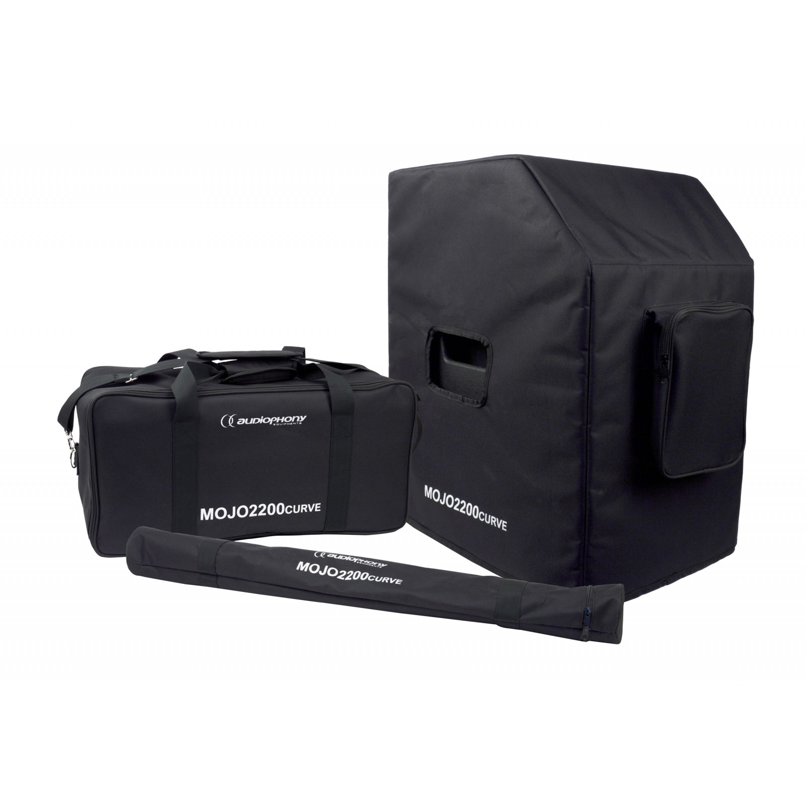 Robuste und gepolstertes Schutzhüllen-Set für das MOJO2200curve Beschallungs-System von Audiophony.