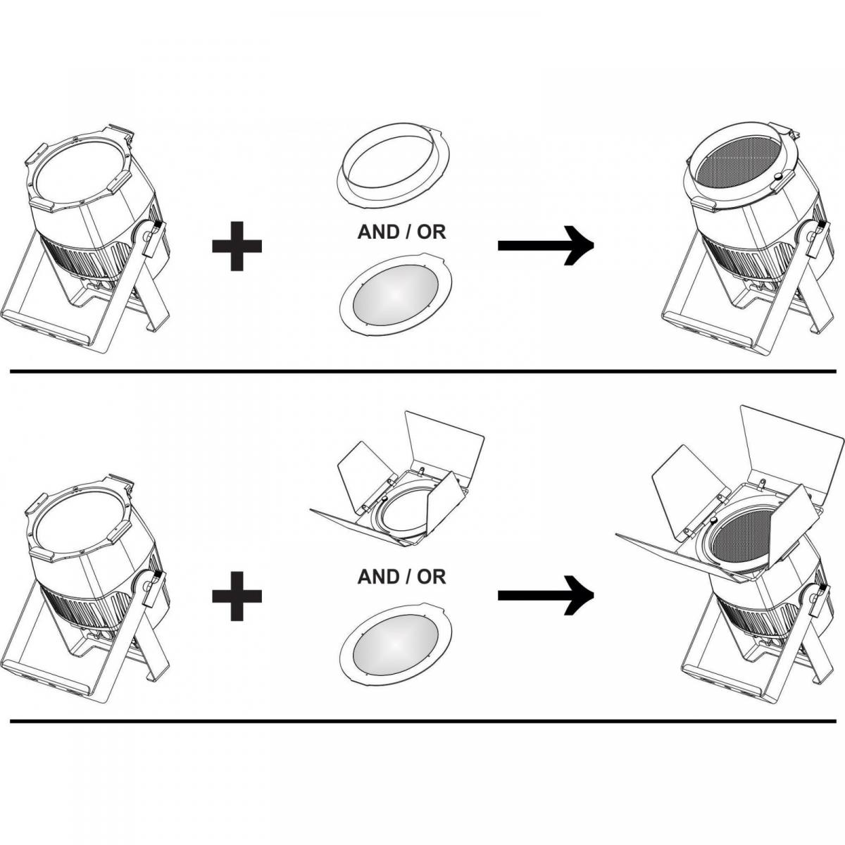 - 3-polige DMX-Ein- / Ausgänge und Neutrik® TRUE1 PowerCON® Ein- / Ausgänge für einfache Verkettung.