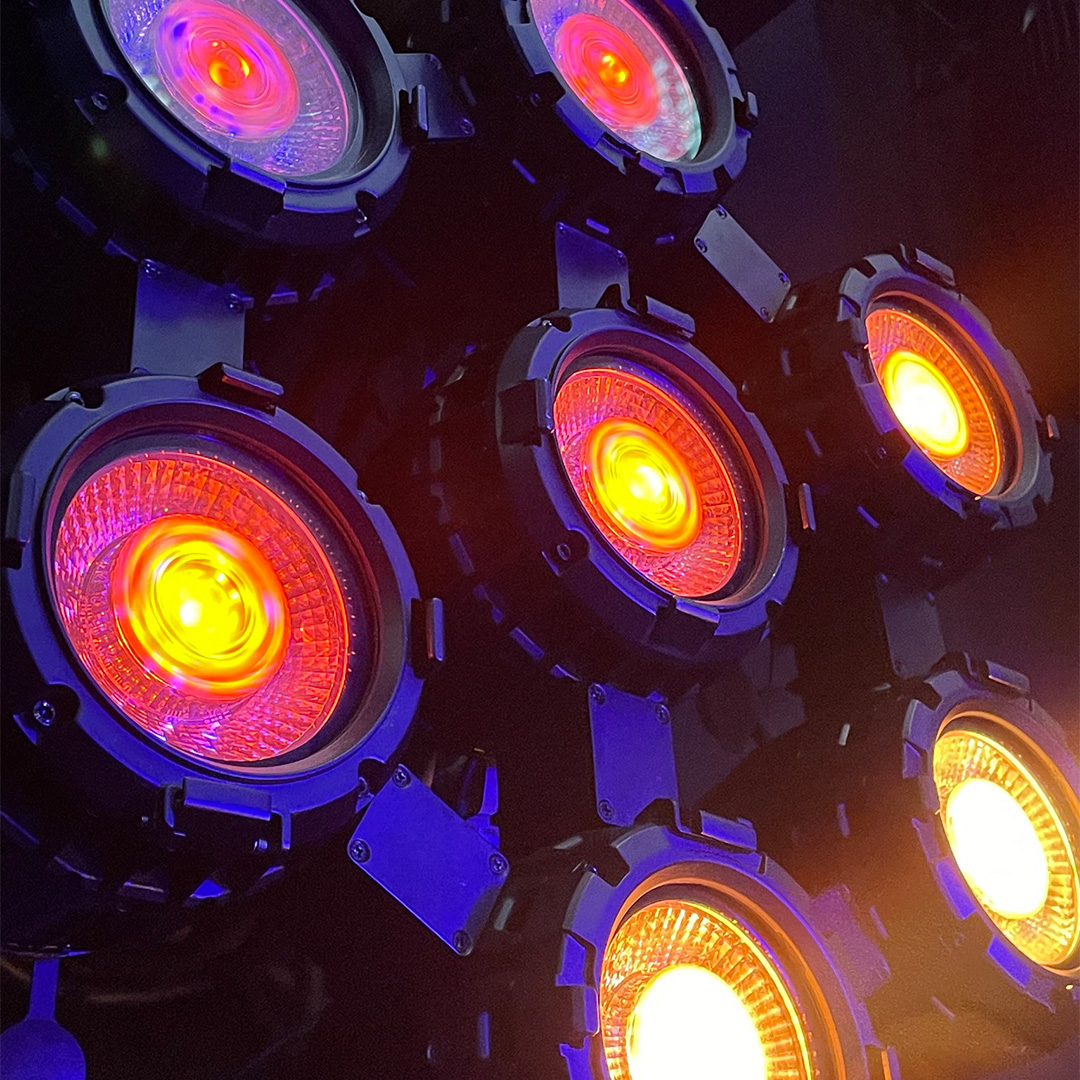 Superkompakter, vielseitiger und leistungsstarker IP65 LED-Blinder mit Amber-Drift-Effekt und RGB-AURA-Effekten.