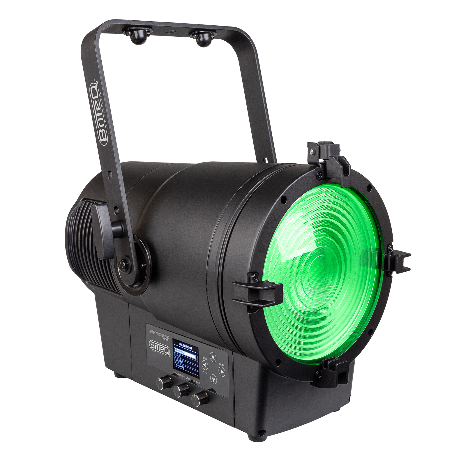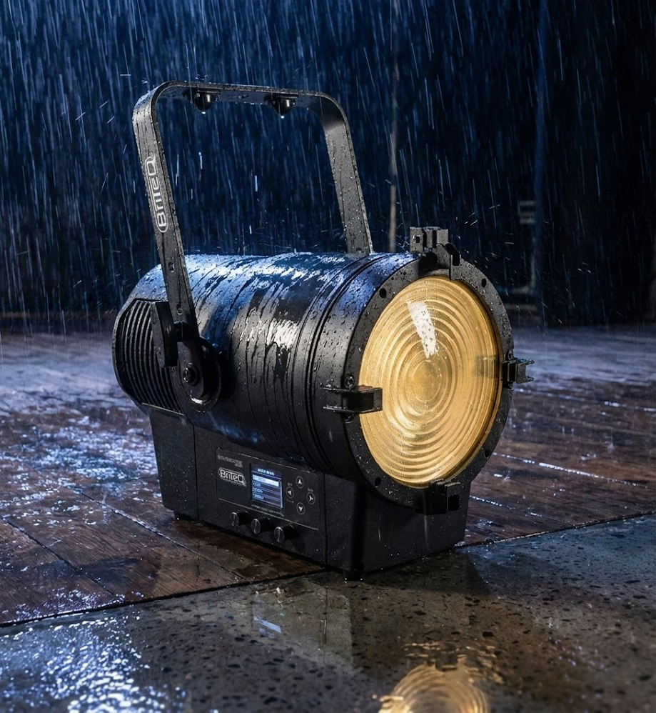 - Dieser LED-Fresnel-Scheinwerfer verfügt über eine leistungsstarke 400-W-Mehrfarben-LED-Technologie.