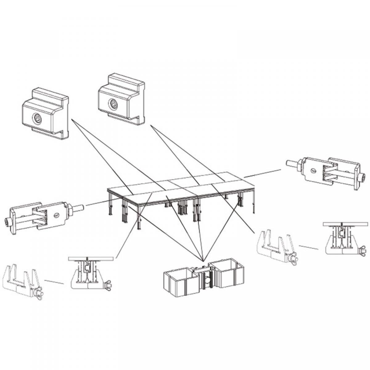 Der PLT-j2 Einschub hilft bei der Nivellierung von mehreren Podesten und spart so viel Zeit.