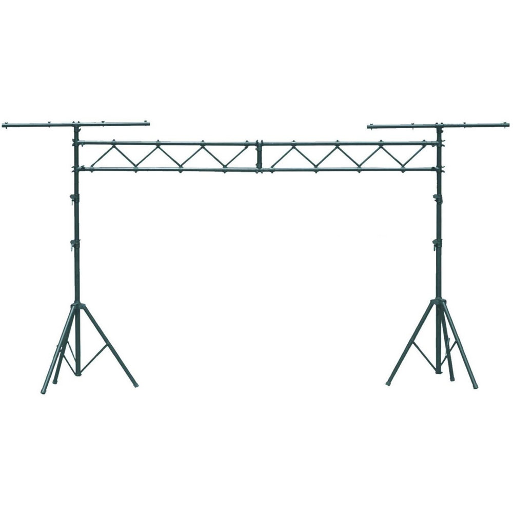 HILEC Stativ Traversen Set, bestehend aus 2 Lichtstative mit T-Bar und 2 Stück 2-Punkt Traverse (je 1,5 m). Die Lichtstative können einzeln genutzt werden oder aber mit den 2 Traversen verbunden werden. Die Traverse kann in einer Höhe von 1,62 m und 3,25 m montiert werden.