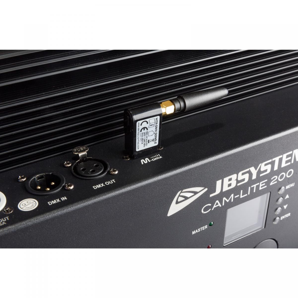 - Wireless DMX (optionaler WTR-Dongle) oder kabelgebundene XLR 3pin Ein-/Ausgänge