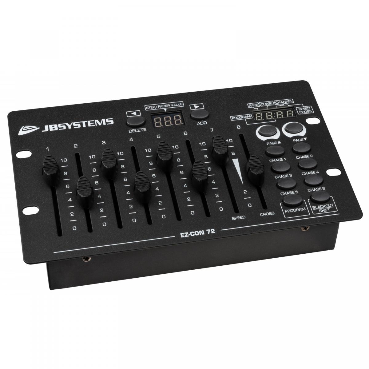 Einfach zu programmierende 72-Kanal DMX Steuerung von JB Systems für bis zu 6 Chaser mit jeweils 40 Programmschritten.
