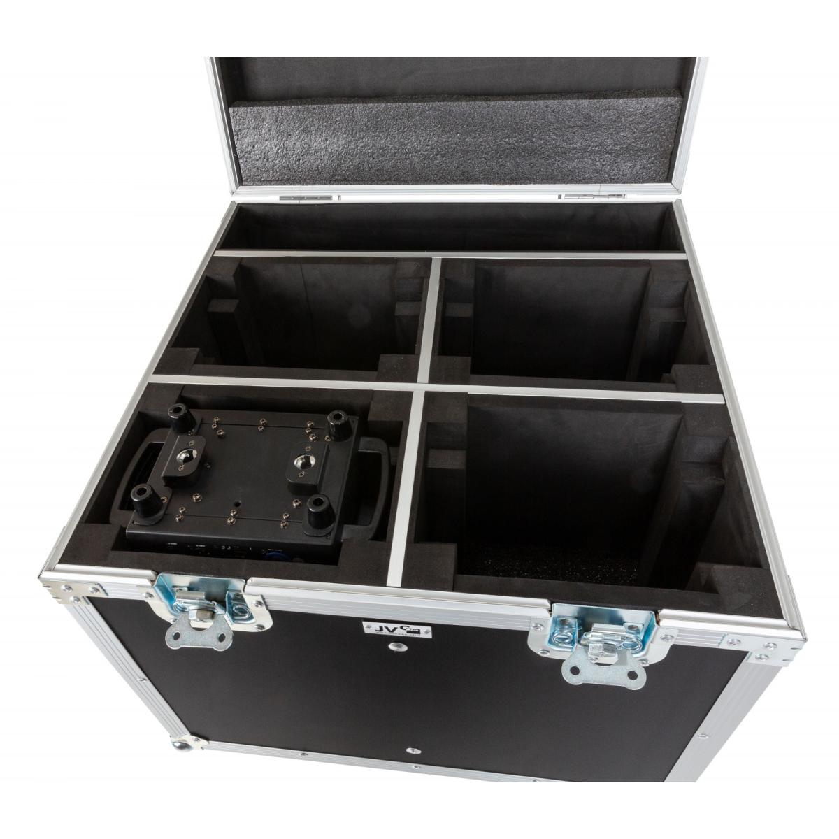 Robustes und staplbares Flightcase für den Transport von 4 Stück JB Systems EXPLORER SPOT.