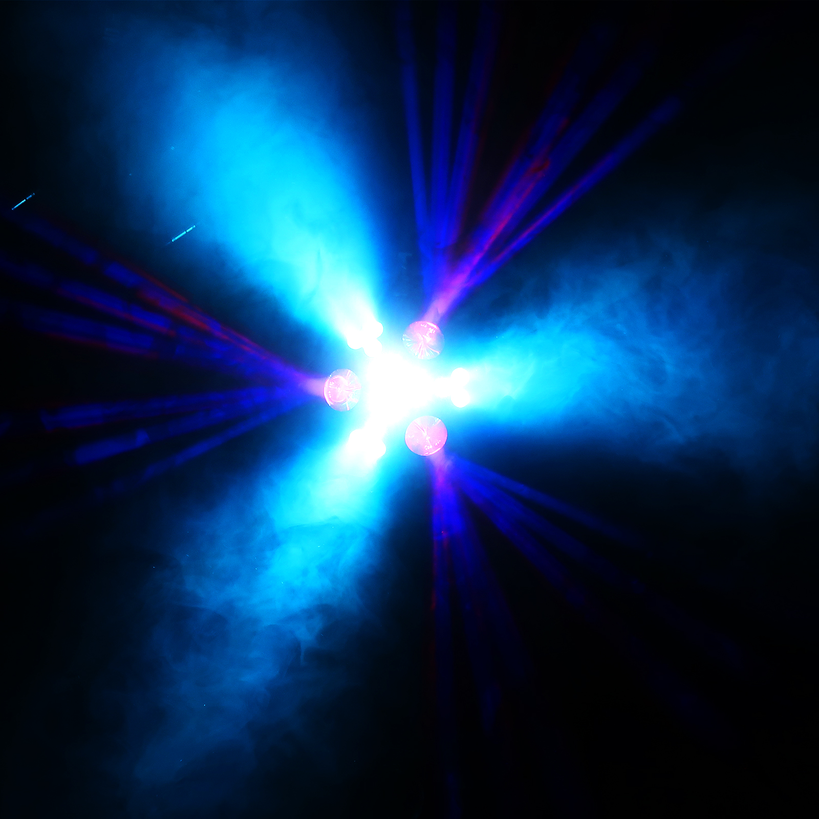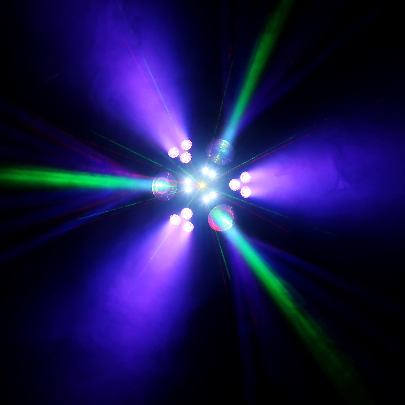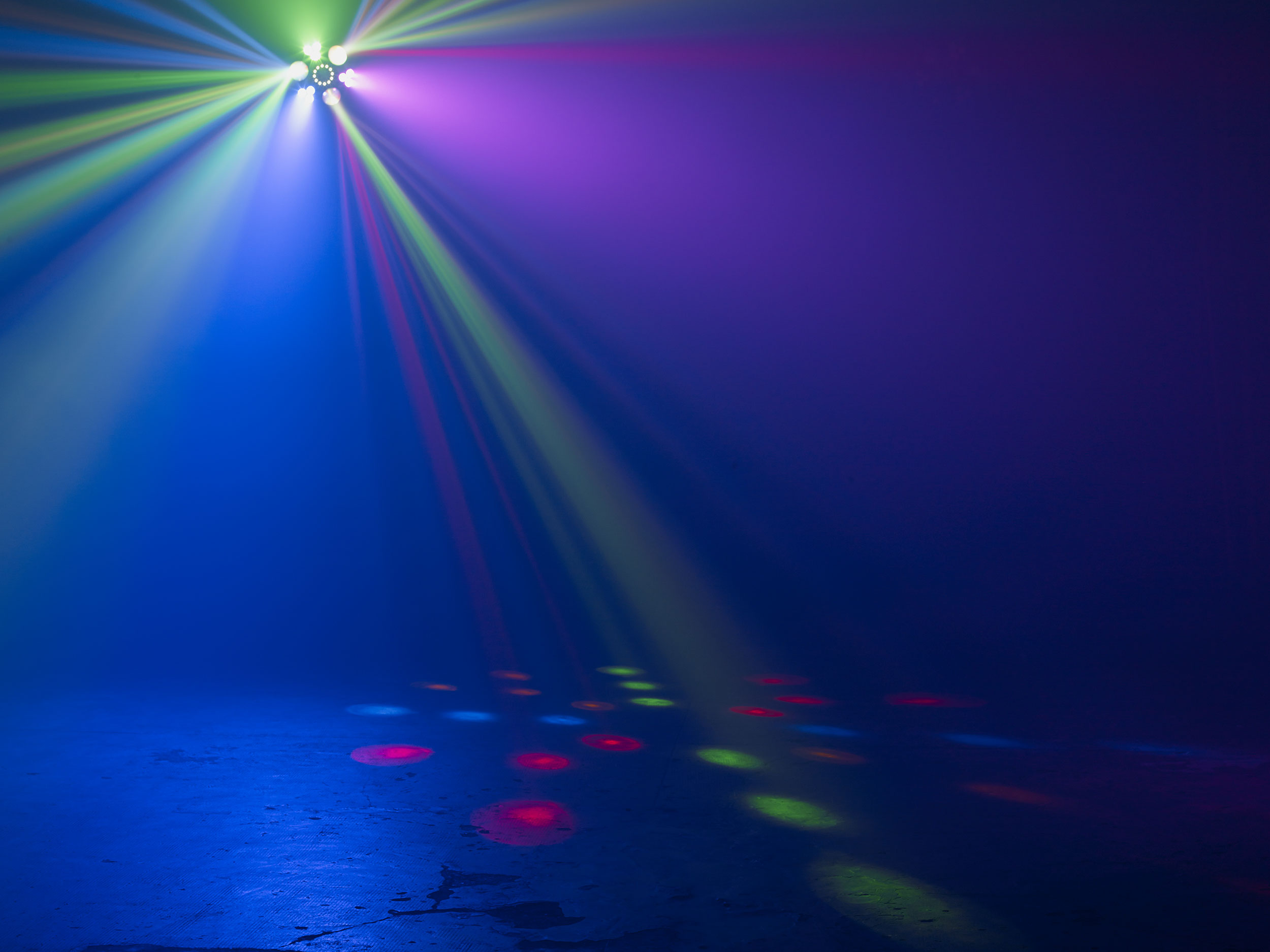 - LED-Flower Effekt: 84 x 0,75 W LEDs (RGBY) für dynamische Mehrstrahlmuster.