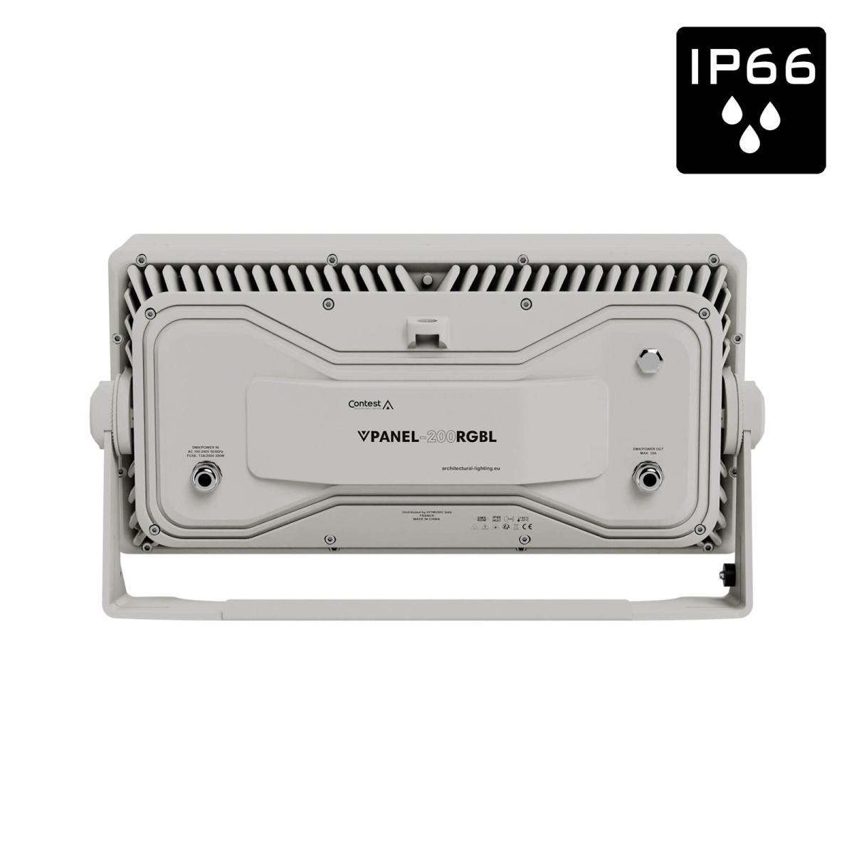 Das VPANEL-200RGBL von CONTEST ist ein leistungsstarker Architektur-Projektor mit 24x20Watt RGBL LEDs und Schutzklasse IP 66.