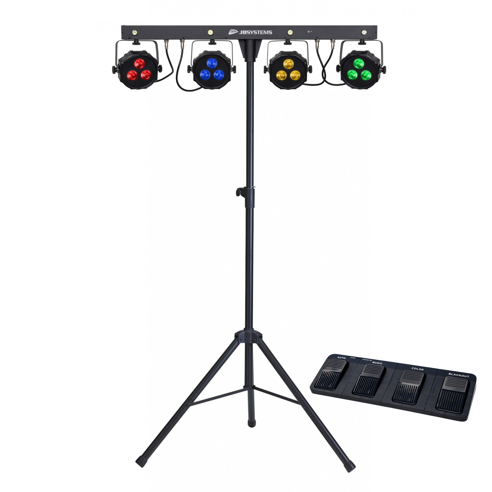 Das LIVESET 2 von JB Systems ist eine elegante, kompakte und leistungsstarke Lichtanlage mit 4 x 27 Watt RGB LED Scheinwerfer, 4 eingebauten Strobe LEDs, wireless Fußcontroller und Taschen. Dieses Set ist ideal für Bands und Alleinunterhalter.
